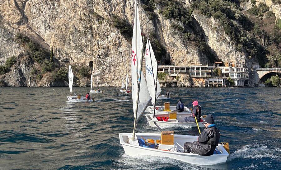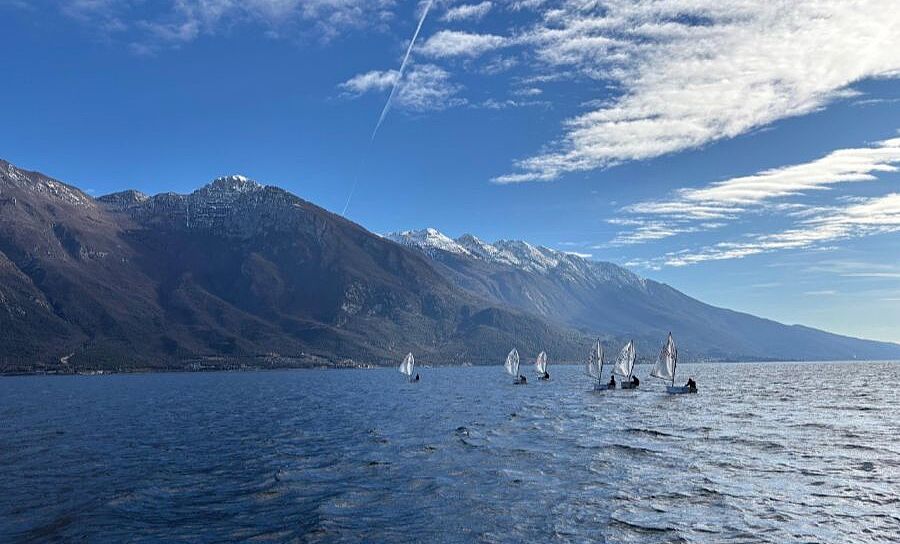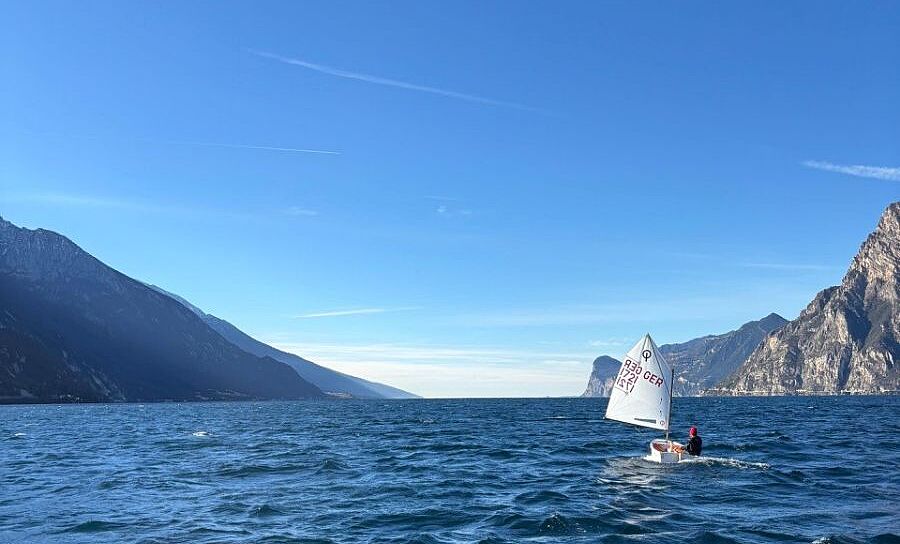 Neben der Trainingsgruppe vom Chiemsee waren der Münchener Yachtclub mit vier Optis und die Baden-Württemberger Trainingsgruppe mit 12 Booten vor Ort, was täglich für gemeinsame Wettfahrten genutzt wurde. Diese 24 Optis waren neben einem 29er, ein paar WASZPs und Open Bigs die einzigen Boote auf dem See - ein Zustand, wie man ihn am Gardasee wirklich nur zu solch frühen Faschingsferien erleben und genießen kann. Wind und Wetter hätten nicht besser sein können, wenn auch kalt, war ab Sonntag die Sonne der tägliche Begleiter und am letzten Tag (Mittwoch) herrschten perfekte Gardasee-Bedingungen: früh bei 4 Grad ein starker Vento, dann in der Mittagspause (welche immer auch zur „Weiterbildung“ bei den olympischen Wintersportarten genutzt wurde) Flaute und am Nachmittag eine kräftige Ora mit bis zu 30 Knoten, welche bis zur letzten möglichen Minute ausgenutzt wurde. Viel zu schnell vergingen die fünf Trainingstage und alle waren sich einig, das könnten wir jetzt jedes Wochenende so haben …