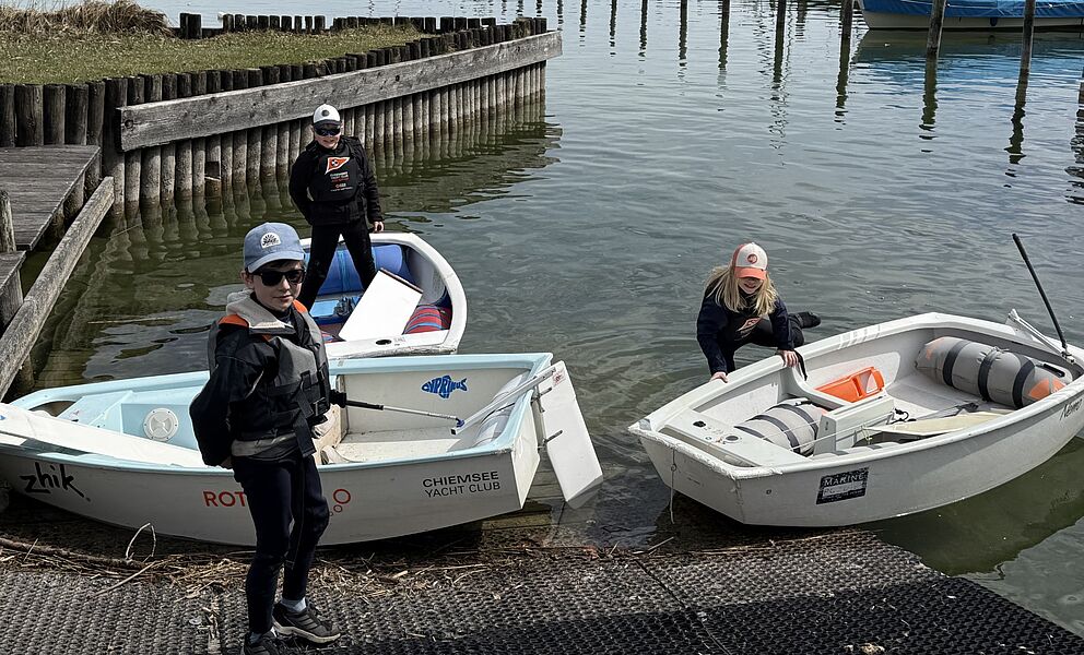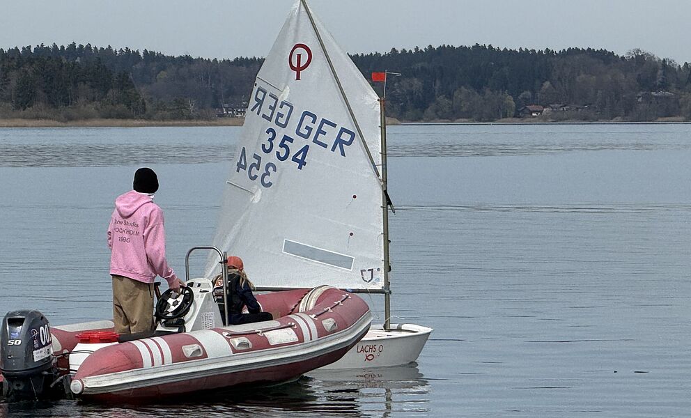 Unter der Leitung von Lennart Reith und mit Unterstützung des Club-Teams ging es am Mittwoch zum ersten Mal wieder aufs Wasser. Zunächst wurden mit dem Motorboot die Sehenswürdigkeiten rund um den Chiemsee erkundet. Anschließend konnten die Kinder auch selbst aktiv werden: erst mit Opti und Paddel, später bei leichtem Wind sogar schon unter Segeln.