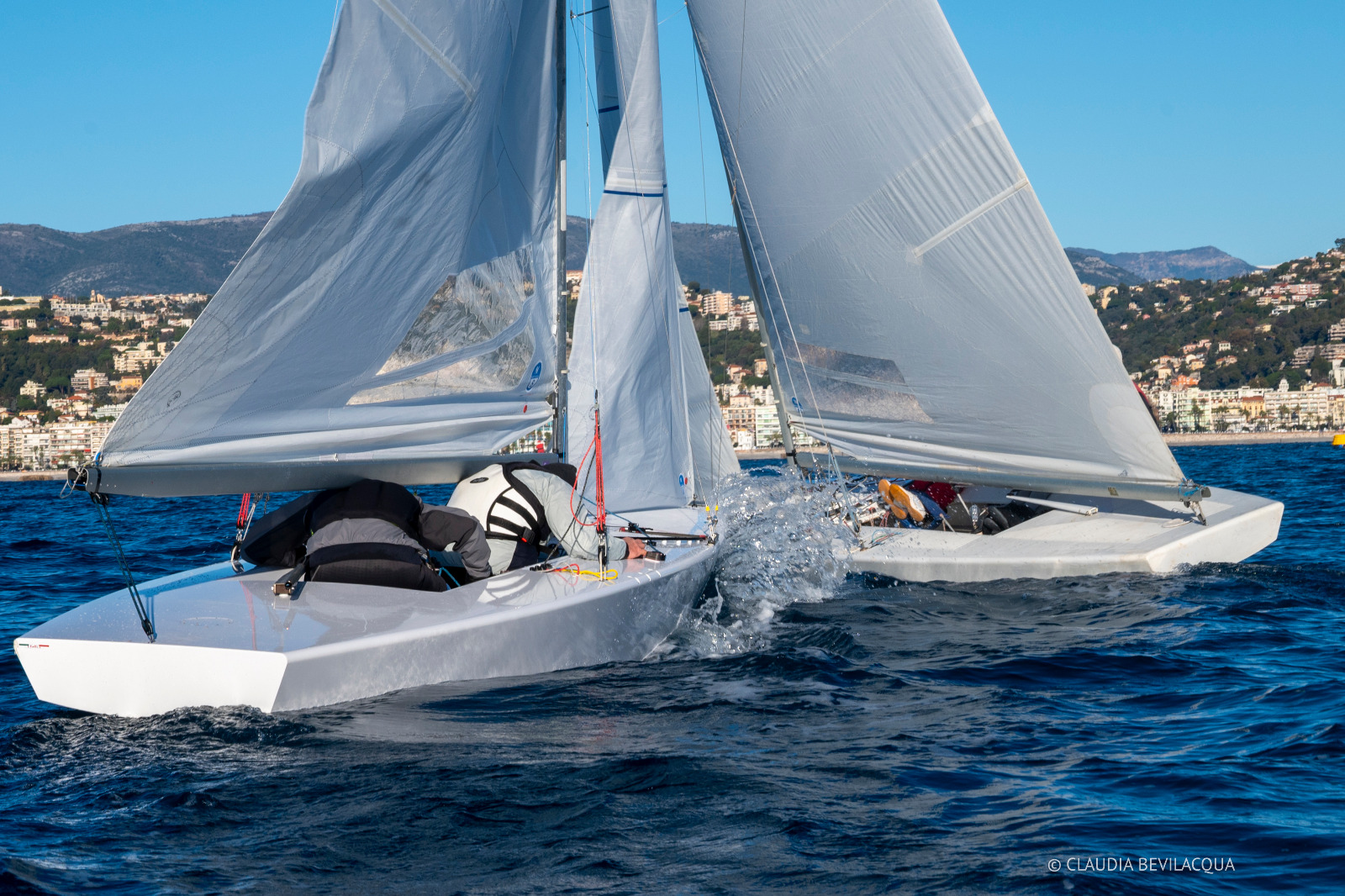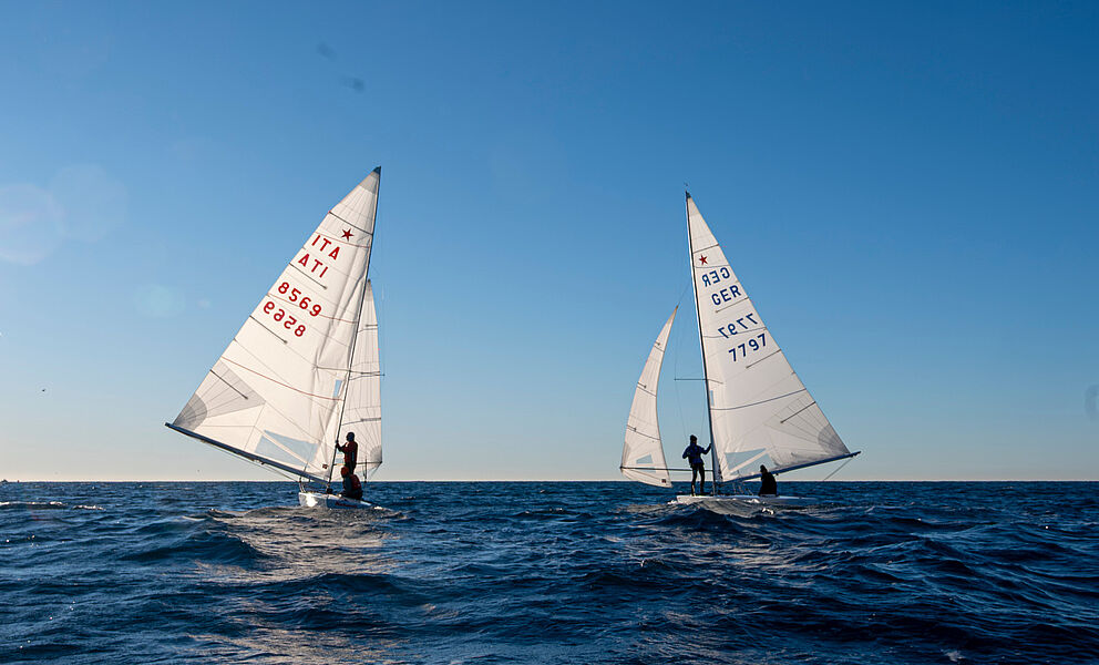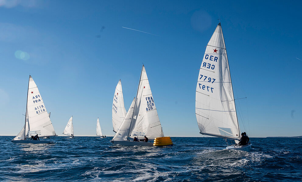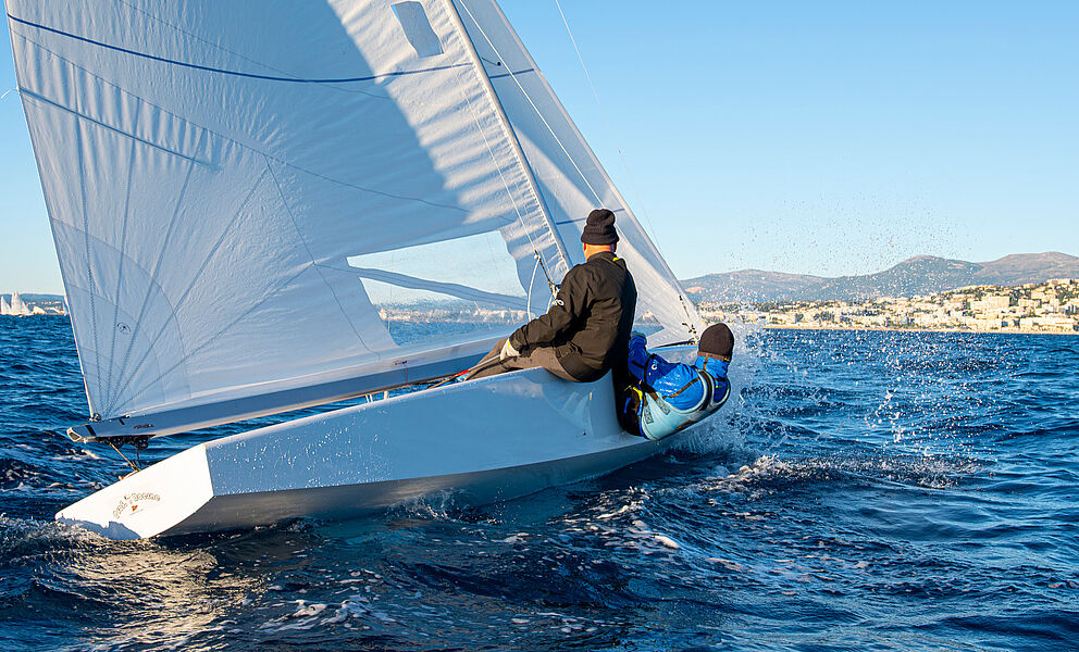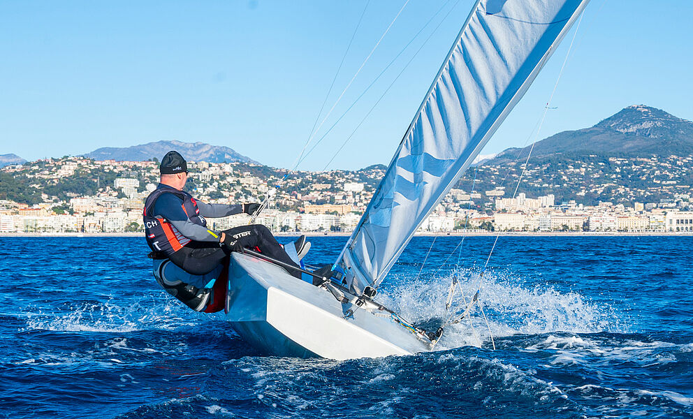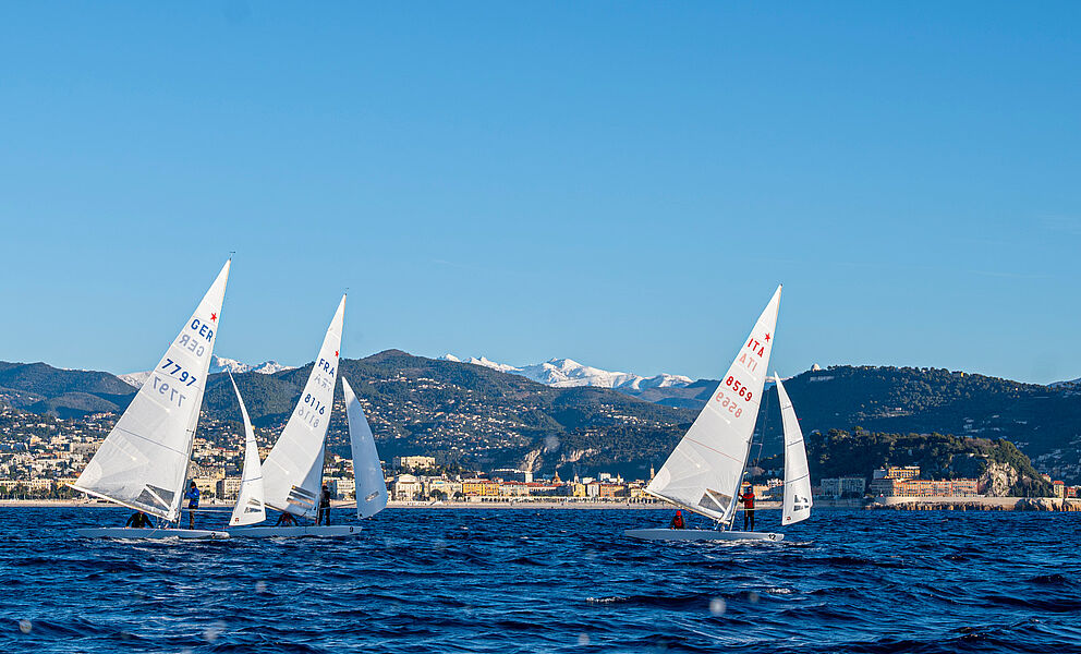 Segeln im Winter? Warum nicht? Während der Teilnahme an der WM in Split erhielten Leissl/Leissl von französischen Teilnehmern die Einladung, am weltbekannten Christmas Race in Nizza teilzunehmen. Die durchschnittliche Tagestemperatur Ende Dezember in Nizza liegt bei erträglichen 15 °C, also - was hält uns auf? So startete die ganze Familie mitsamt Boot am zweiten Weihnachtsfeiertag früh in Richtung Nizza, das nach rund neun Stunden Fahrt erreicht wurde. Am 27. erfolgte der Aufbau des Bootes, das Einkranen und die Begrüßung im Club Nautique de Nice. Am Sonntag um 07:30 Uhr!!! Steuermannsbesprechung und unmittelbar danach ging es Richtung Regattafeld. Das Vorbereitungssignal ertönte pünktlich um 08:45 Uhr – übrigens jeden Tag. Bei der jeweils ersten Wettfahrt eines Tages wehte der Wind mit 5 Bft., die sich im Laufe des Vormittags auf 3–4 Bft. reduzierten. Am Sonntag und Montag fanden jeweils drei Wettfahrten statt, und um die Mittagszeit war das gesamte Feld wieder im Hafen. So blieb genügend Zeit, sich Nizza anzuschauen.